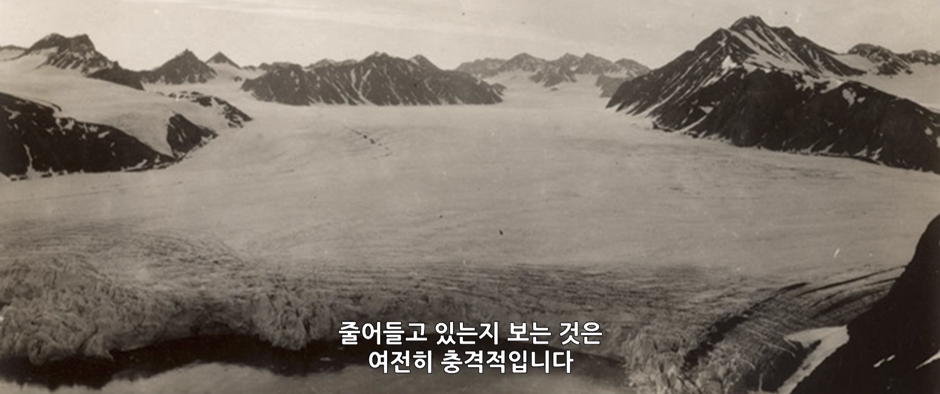 빙하가 얼마나 녹고 있는지 보여준 사진.
